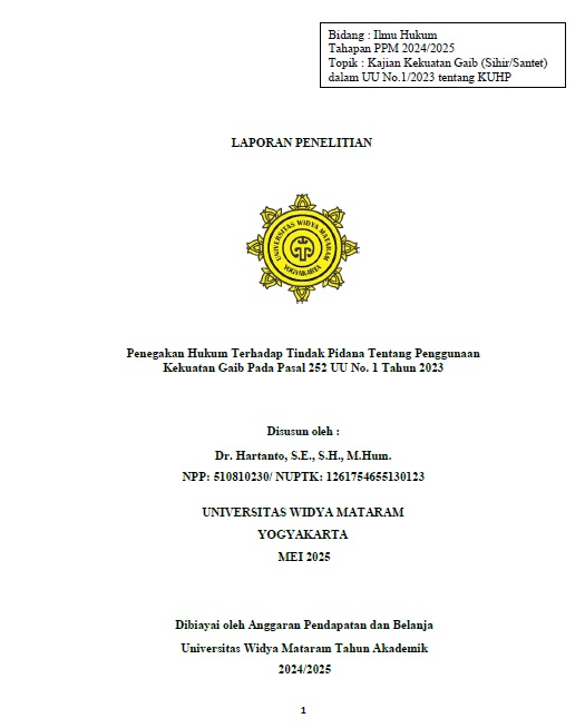 Tema:Laporan Penelitian: Dr. Hartanto, S.E., S.H., M.Hum.